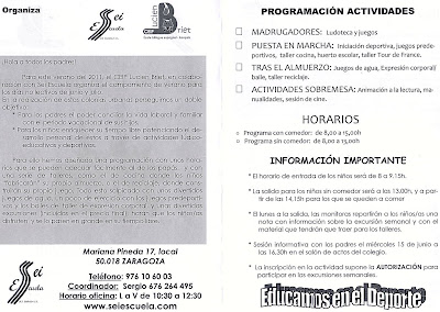 para los días no lectivos de JUNIO y JULIO. En los impresos que podéis ver aquí (y descargar) tenéis toda la información… No os durmáis que el plazo acaba el 25 de mayo.