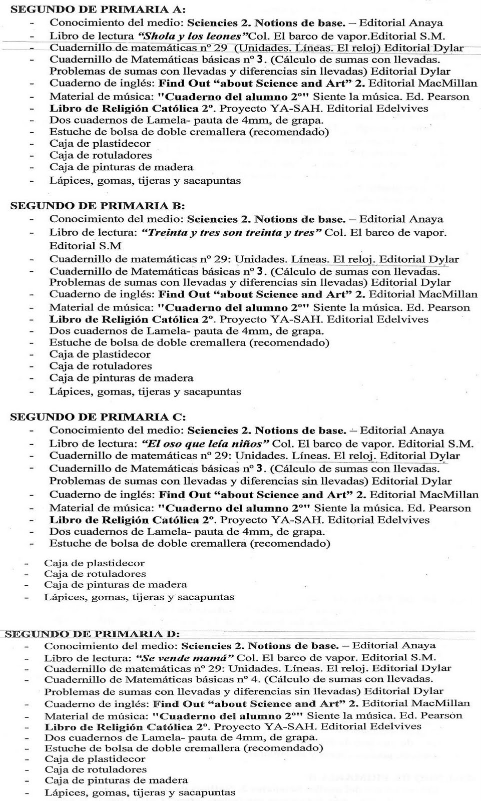 2. En los listados de 2º donde pone "Cuaderno de matemáticas basicas nº 4" debe poner nº 3.