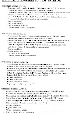 ME IMAGINO QUE TODOS ESTOS CAMBIOS SE LOS HABREIS PASADO A LA LIBRERÍA QUE A TRAVES DEL AMPA NOS VA A PROPORCIONAR A MUCHOS PAP@S EL MATERIAL ESCOLAR. APROVECHO PARA DAR MI AGRADECIMIENTO POR FACILITAR LAS COSAS DESDE EL AMPA A LOS PAPAS