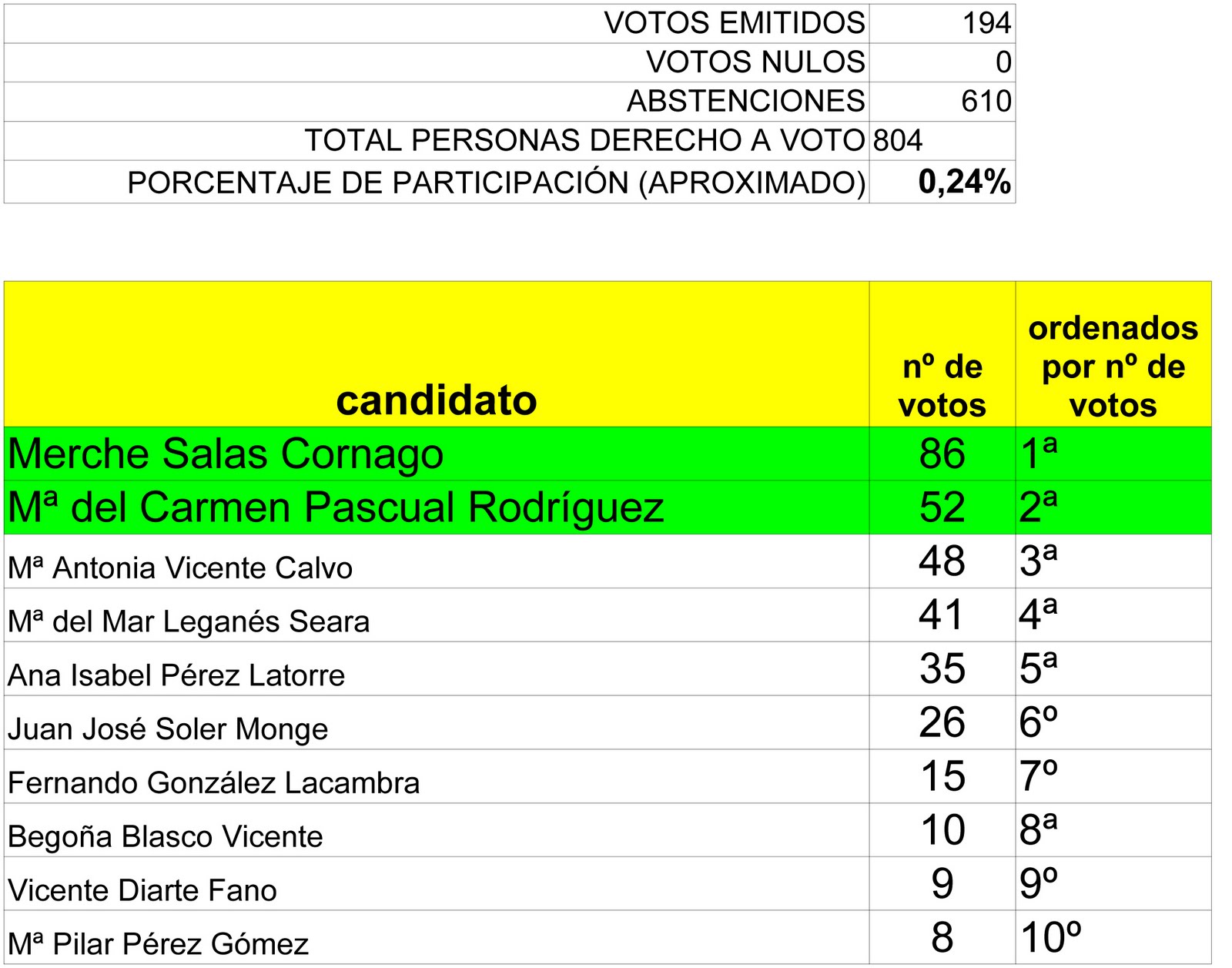 Como nº 2 con 52 votos: Mª Carmen Pascual Rodriguez.