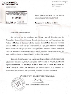 En El periódico de Aragón se acerca un poco más a la versión real su publicación, pero hay que leer todo el artículo para cerciorarte, ¿por qué no es cuestión de titular la falta de respeto hacia las AMPAs?, ¿qué estará pasando en España para que hasta el cuarto poder esté en sus manos?.