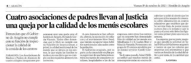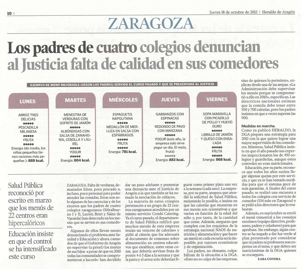 A continuación la noticia aparecida en el Heraldo de Aragón del jueves 18/10/2012 pg. 10