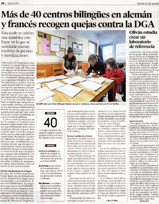 La recogida de cartas en defensa del bilingüismo, es hoy noticia en el periódico Heraldo de Aragón.