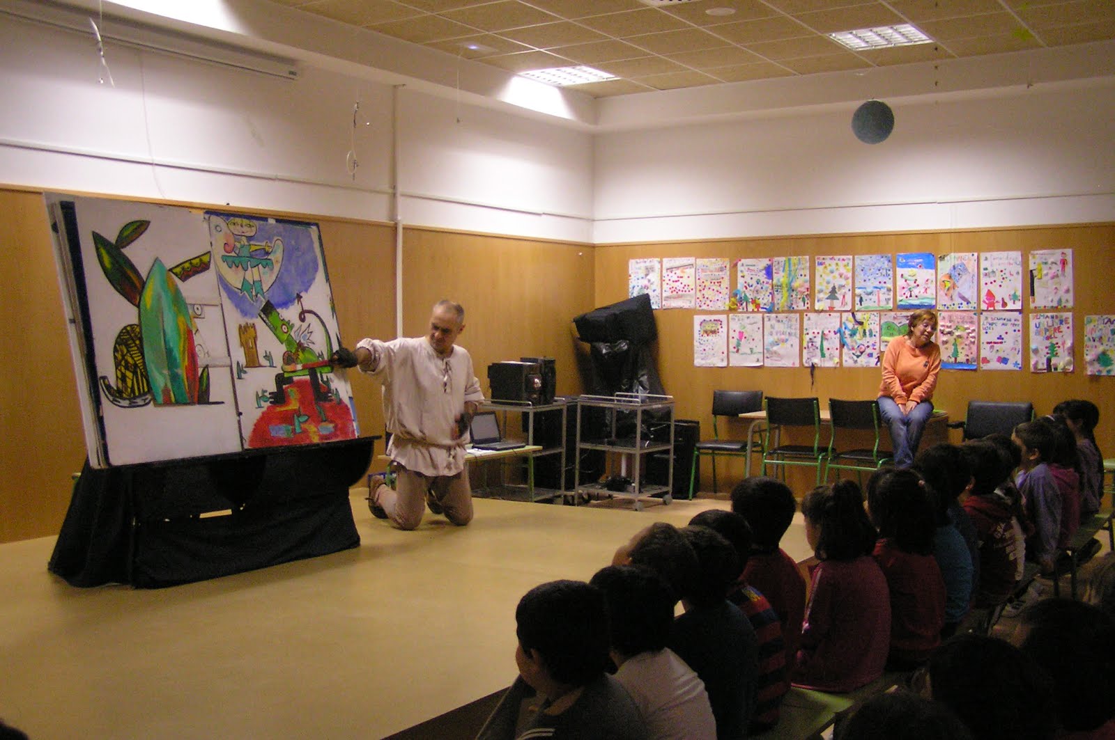 vino a nuestro cole Mariano Lasheras cuentacuentos y actor, miembro de Los Navegantes. Niños de primaria y mayores