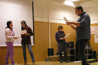 Por grupos fuimos escenificando poemas;