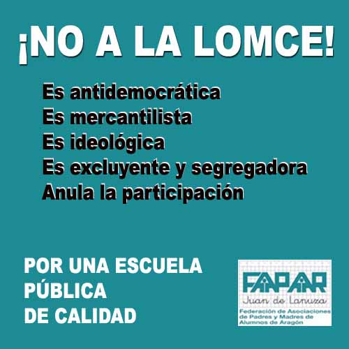 Esta norma supone un claro ataque al porvenir educativo de nuestros hij@s y por ello es necesario conocerla y movilizarnos para intentar que este desastre no se lleve a cabo.