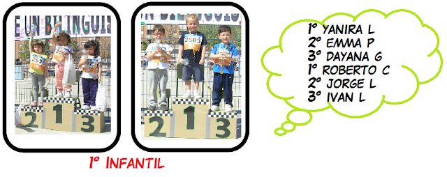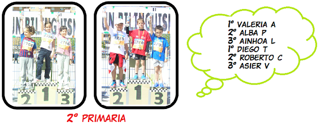 Pero habeís cometido un pequeño error al poner el nombre del ganador de la carrera de 1º de primaria, mi campeón se llama Hugo Claveria, no Diego. Espero que lo arregleis, se lo quiero enseñar a mi hijo con su nombre…..