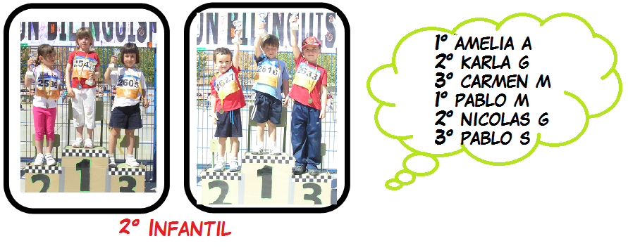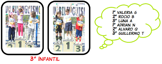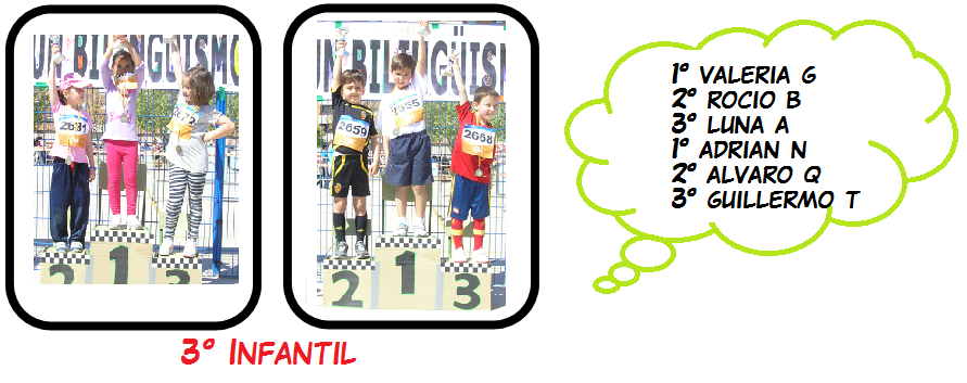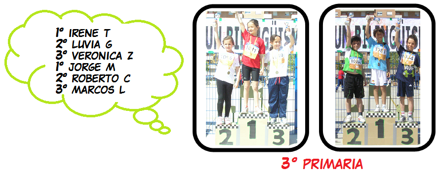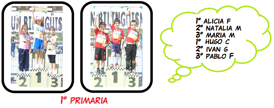 Pero habeís cometido un pequeño error al poner el nombre del ganador de la carrera de 1º de primaria, mi campeón se llama Hugo Claveria, no Diego. Espero que lo arregleis, se lo quiero enseñar a mi hijo con su nombre…..