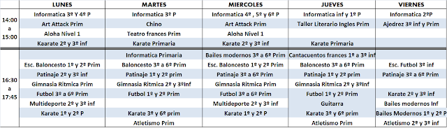 En el cuadrante puedes ver que tienes "Bailes modernos" para infantil, 1º y 2º primaria los viernes por la tarde.