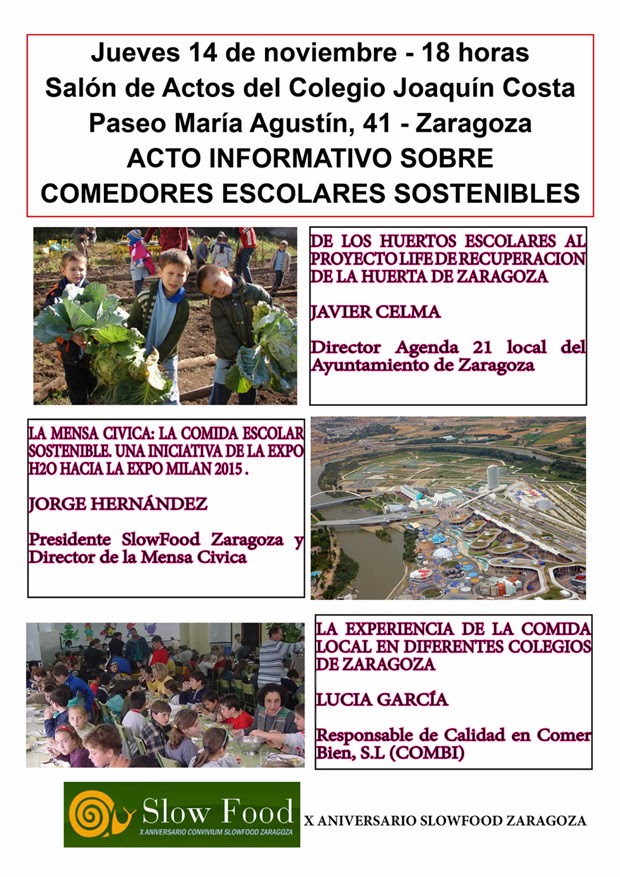 Tras varios años de trabajo colaborativo, en pro de una huerta sostenible, que restaure las viejas huertas del Ebro y sus afluentes. Tras años de promover a pequeños productores y ganaderos que van incrementando su oferta con productos naturales, ecológicos y con hondas raíces culturales, llega la hora de avanzar en la educación escolar y de la comunidad educativa. La apuesta que hicimos en el año 2008, en la Expo H2O de Zaragoza y el reto que nos hicimos ante la expo de Milán 2015 sobre los retos de la alimentación mundial, trata de compatibilizar el alimento para todos, con la sostenibilidad del planeta. Un reto que el día 14 de noviembre comienza a ver la luz de pequeños resultados prácticos. Nuestra misión es hacer de esas pequeñas prácticas de sostenibilidad, una alternativa real y diaria. Estamos en Europa. Y en Europa ya se camina en la misma dirección.