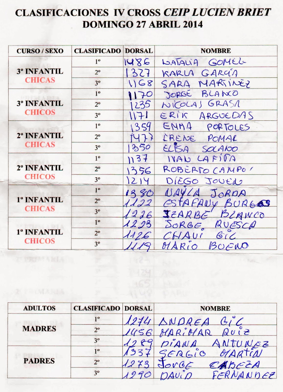 | Podium 3º Primaria Chicos |