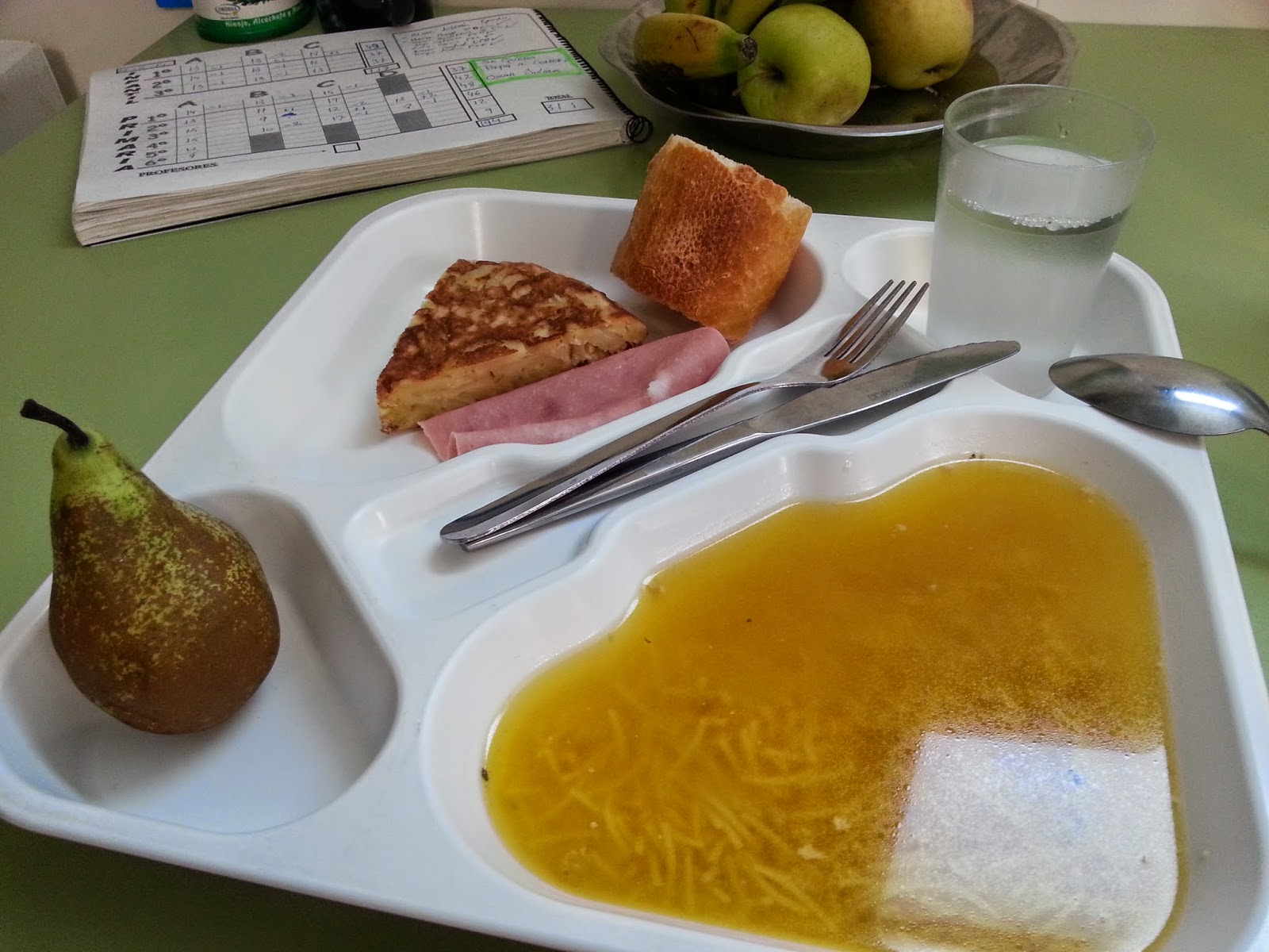 sopa, de segundo tortilla y jamón york y plátano de postre. Como se