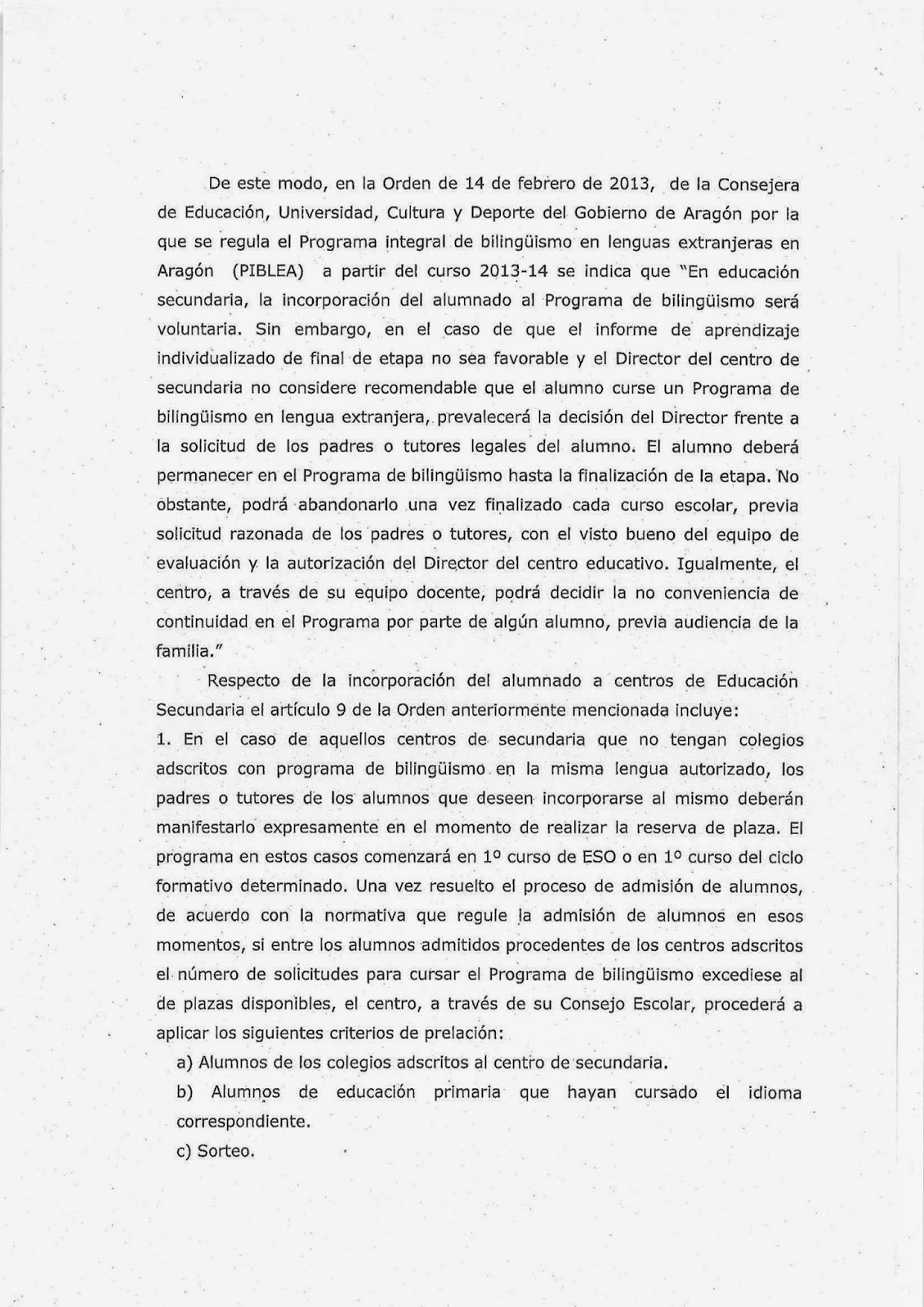El diputado de CHA Gregorio Briz volvió a preguntar a la consejera Serrat sobre algo que nos preocupa mucho: ¿continuarán nuestros hijos con el programa bilingüe de francés cuando pasen al instituto?