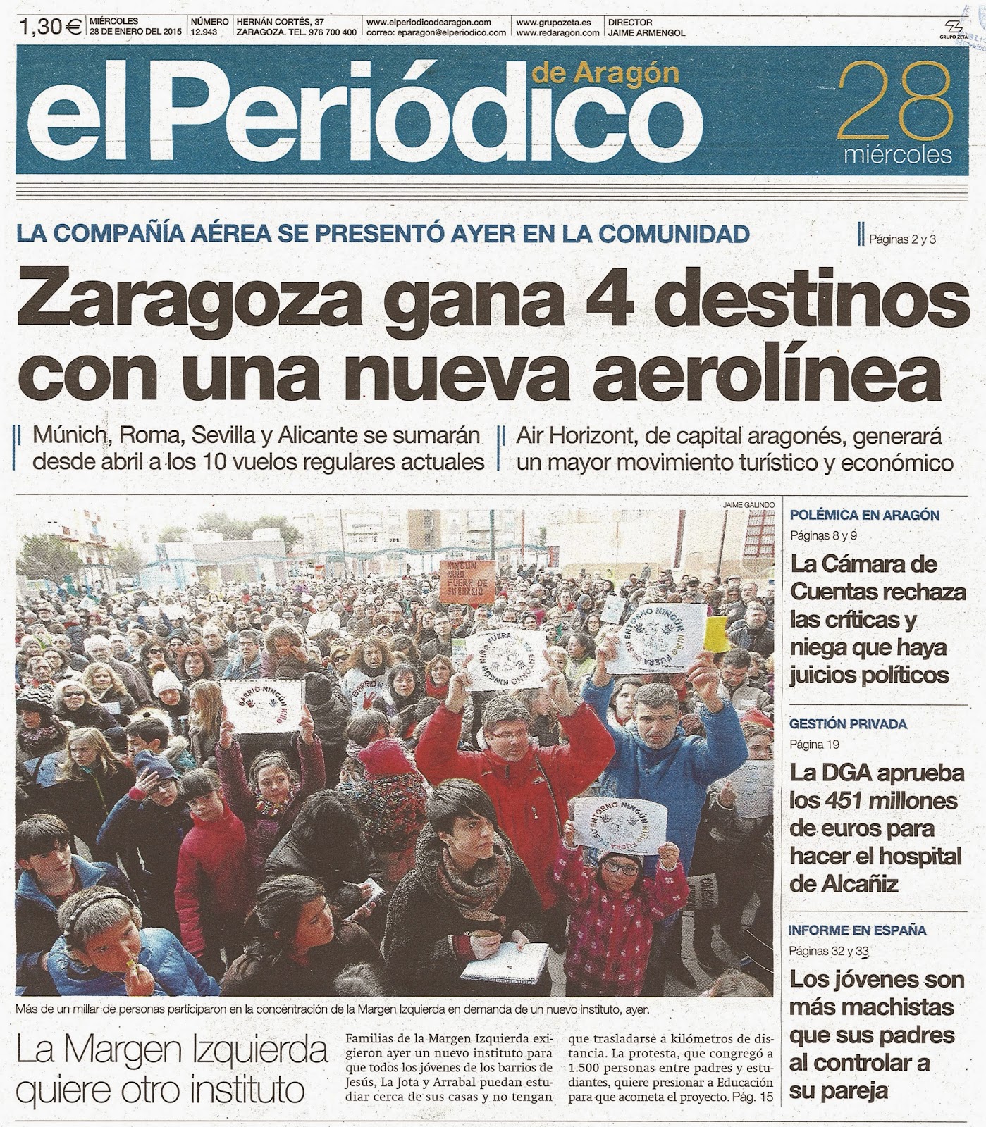 Hace más de un año que las asociaciones de vecinos del Barrio de la Jota y del Barrio Jesús, empezaron a colaborar con las AMPAS de los colegios públicos de su zona, al percatarse de una realidad abrumadora que iba a obligar a las familias de la zona a desplazar a los niños de secundaria en algunos casos más de 3 KM de su vivienda, para poder continuar con sus estudio ( no olvidemos , obligatorios ). Debido a la FALTA DE PLAZAS DE LA ZONA.