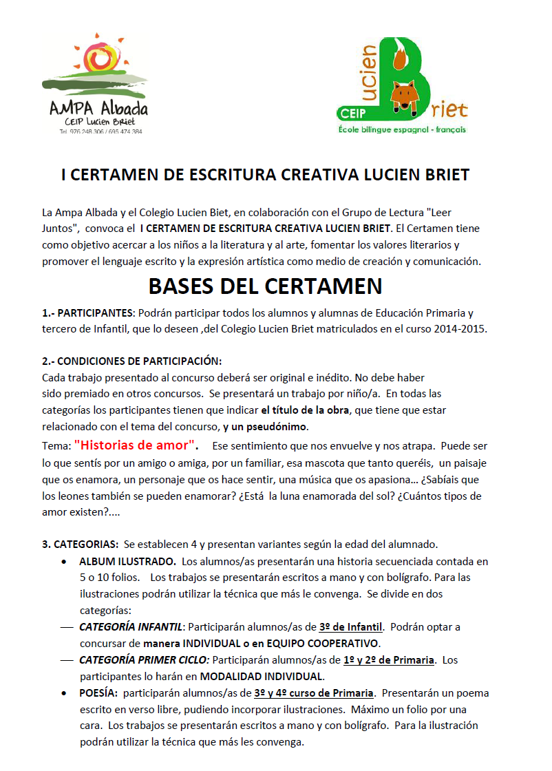 I CONCURSO DE ESCRITURA CREATIVA LUCIEN BRIET.