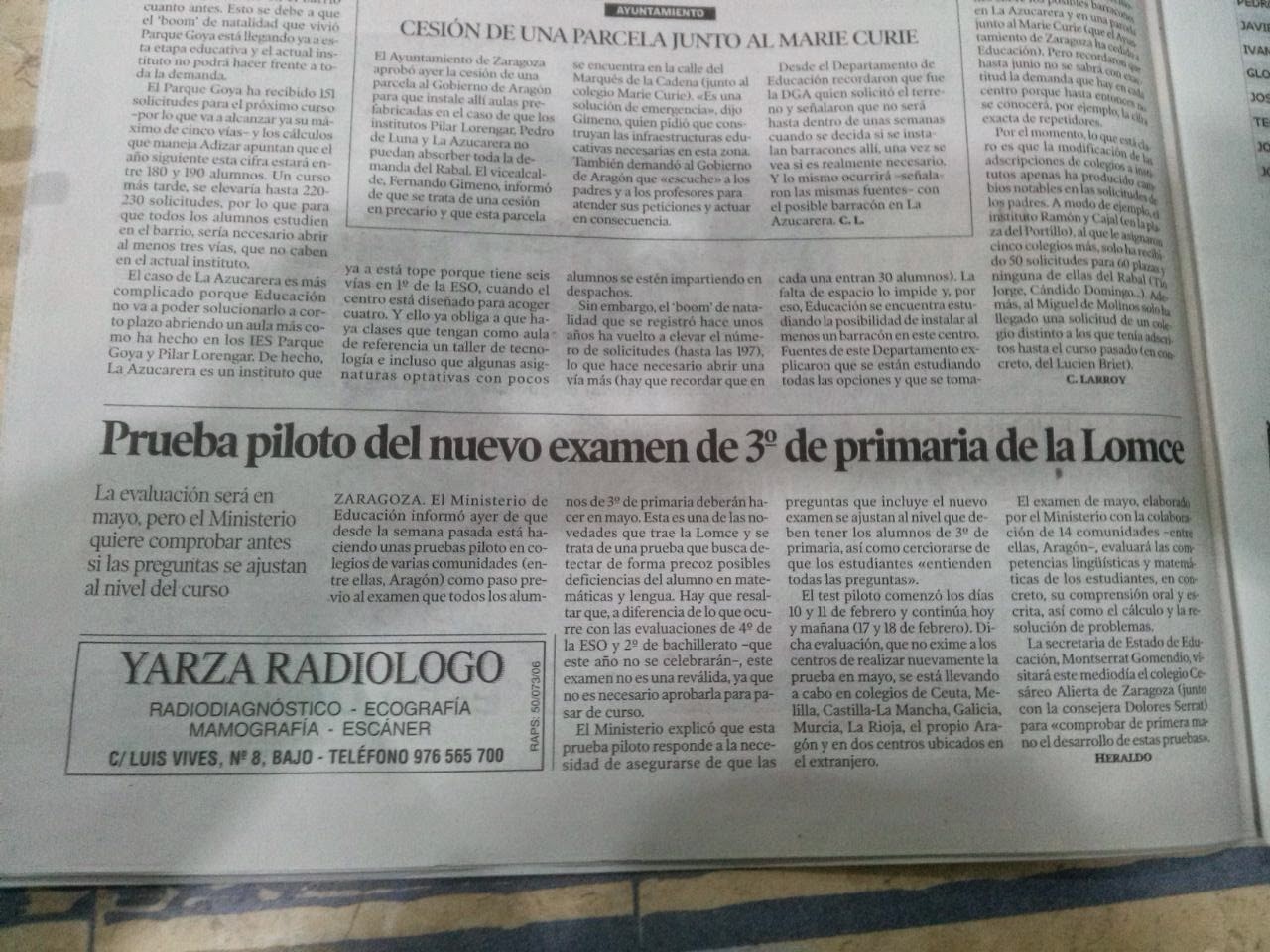 Los colegios Cesáreo Alierta y Agustín Gericó de Zaragoza realizan esta semana la prueba piloto del nuevo examen.