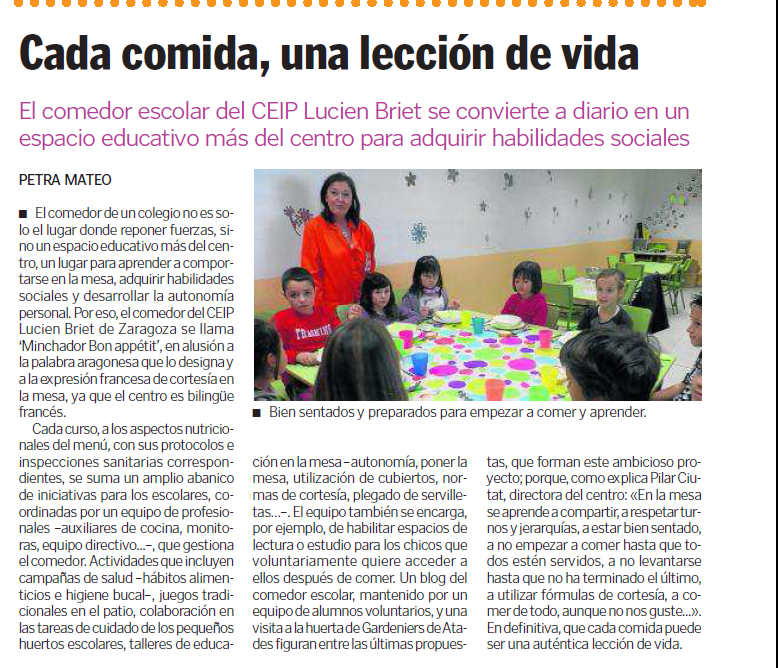 El comedor  escolar del CEIP Lucien Briet se convierte a diario en un espacio educativo más del centro para adquirir habilidades sociales…