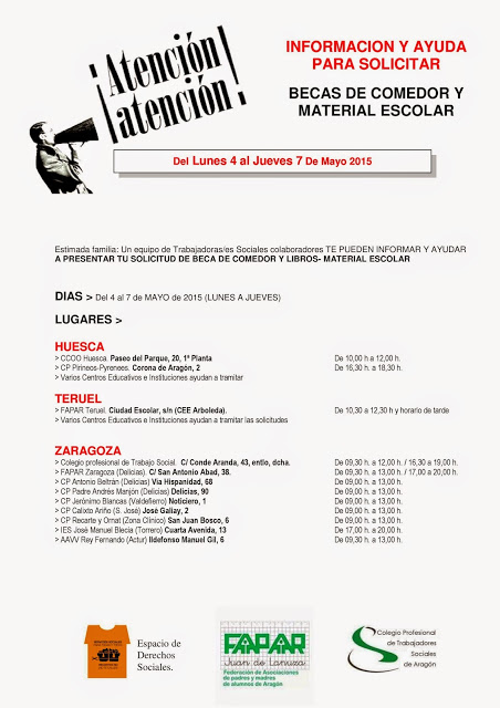 Recordamos que el horario en nuestra sede de Zaragoza (San Antonio Abad, 38) es de 9:30 a 13 h y de 17 a 20 h