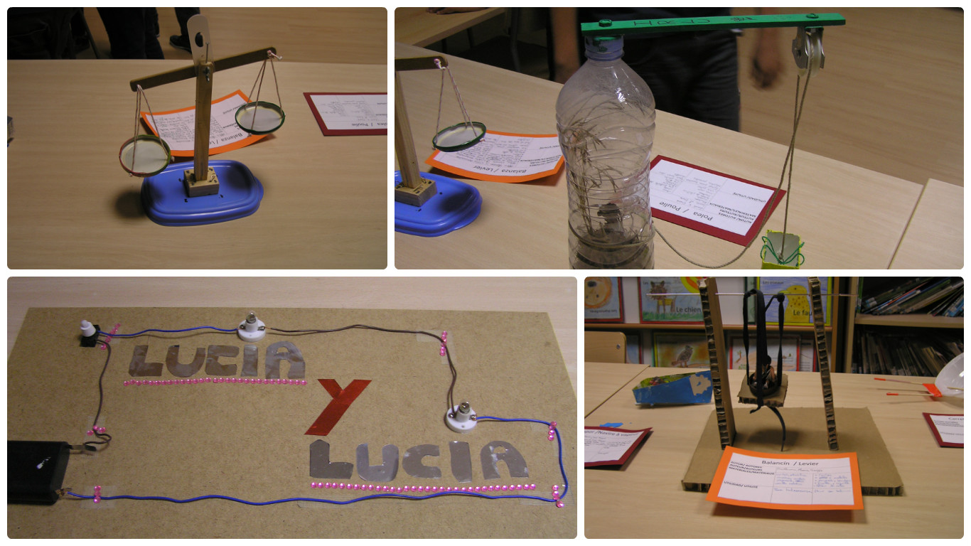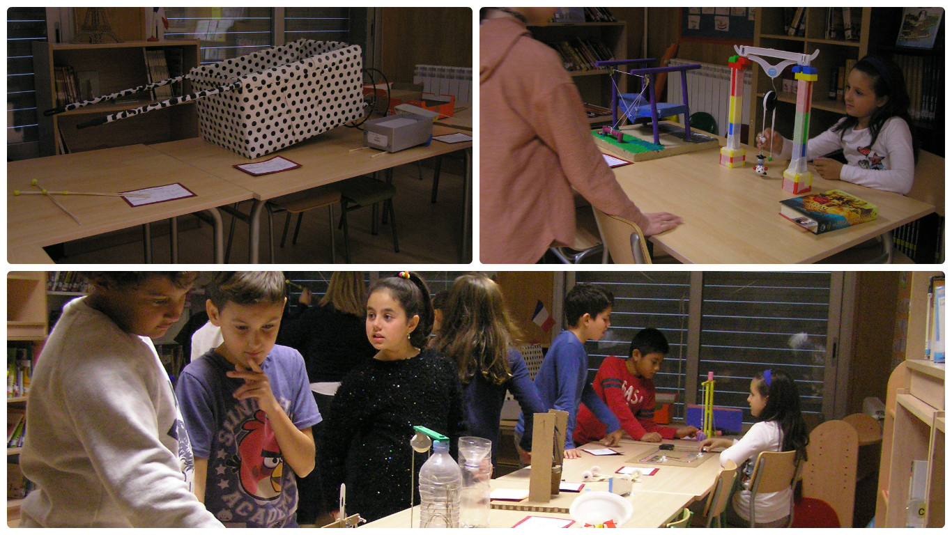 Desde el área de Ciencias los alumnos que el año pasado estaban en 5º (ahora los mayores de 6º) realizaron unas máquinas han expuesto durante esta semana en la biblioteca, a la par que la exposición de Ingeniería de papel.
