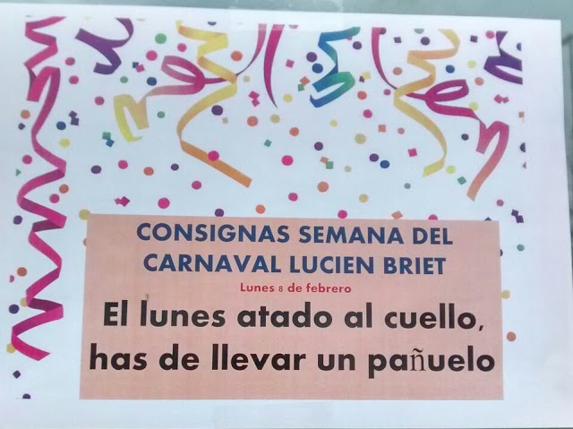 En la web del cole pone que el jueves, sombrero. Por si os sirve.