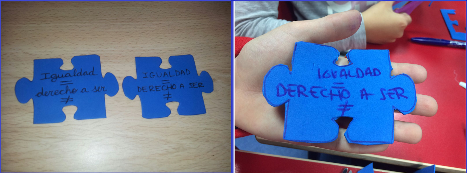 puzzle azul, símbolo del Autismo, con el lema IGUALDAD = DERECHO A SER DIFERENTE