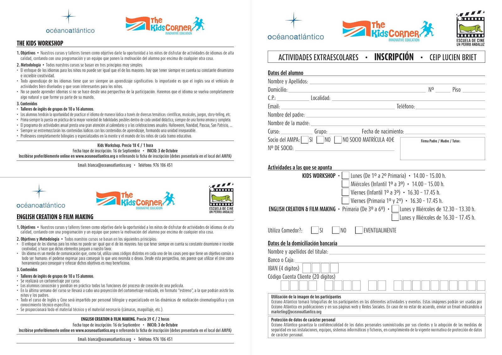 Os presentamos dos nuevas extraescolares en el cole ENGLISH CREATION & FILM MAKING para niños de 3º a 6º primaria y KIDS WORKSHOP de 1º de infantil a 2º Primaria.