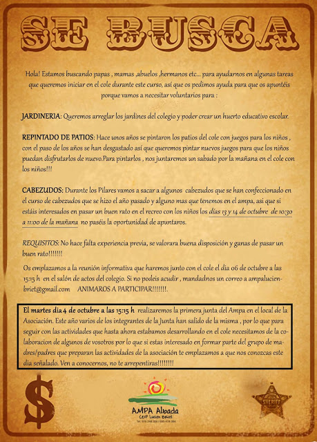 Perdon es el 4 de octubre martes, estaremos en el local del ampa, si somos mas de 7 /8 solemos ir al salon de actos