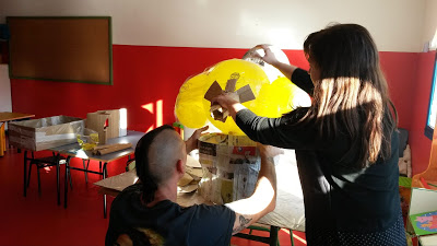 En octubre del curso pasado, tuvimos oportunidad de adquirir a un precio muy ventajoso un cabezudo que se bautizó con el nombre de «Ponchín» y cuya presentación se hizo el último día de clase antes de las vacaciones de Navidad.