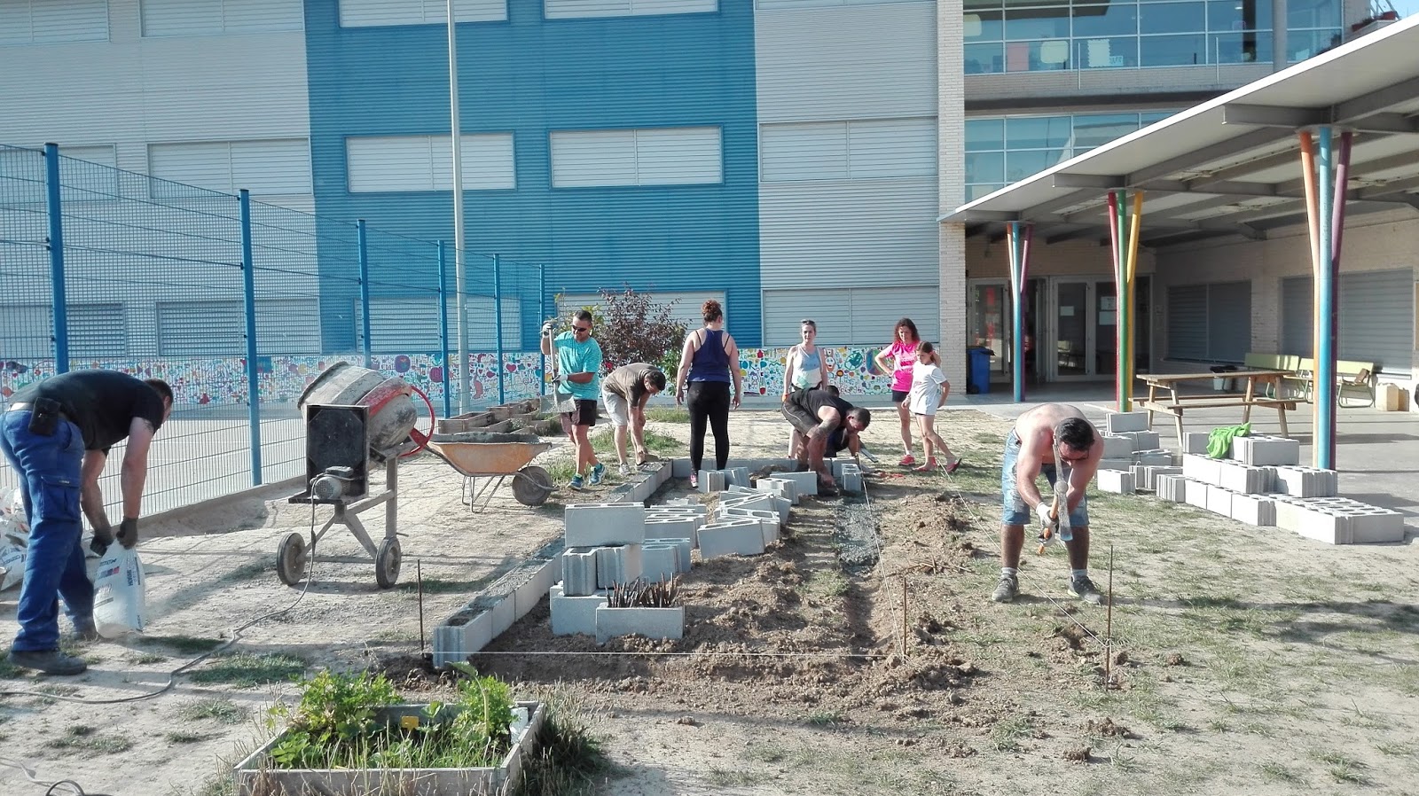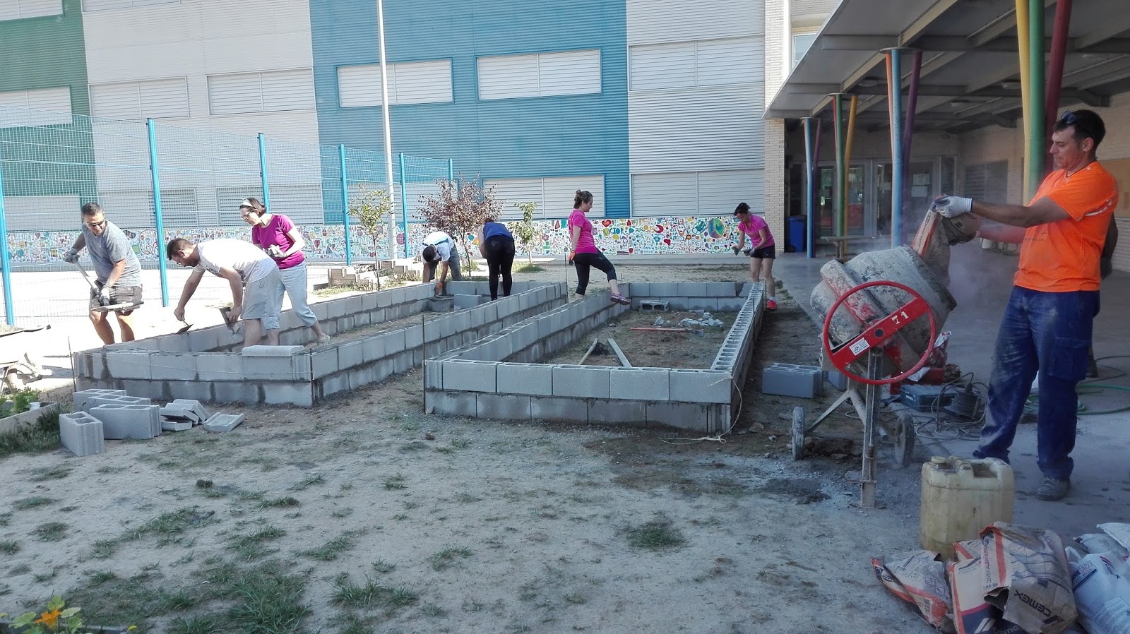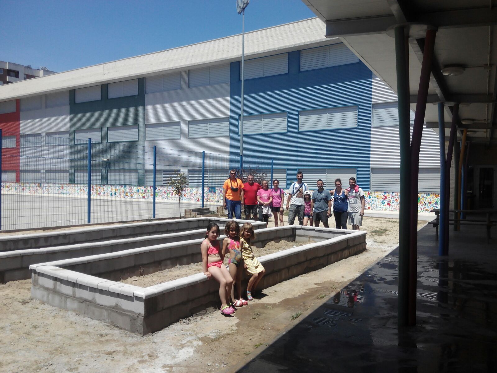 Un grupo de padres y madres voluntarios hemos empezado a mejorar el huerto del colegio. Se han colocado dos bancales de hormigón para que alumnos y profesores puedan usarlos a partir del curso que viene.