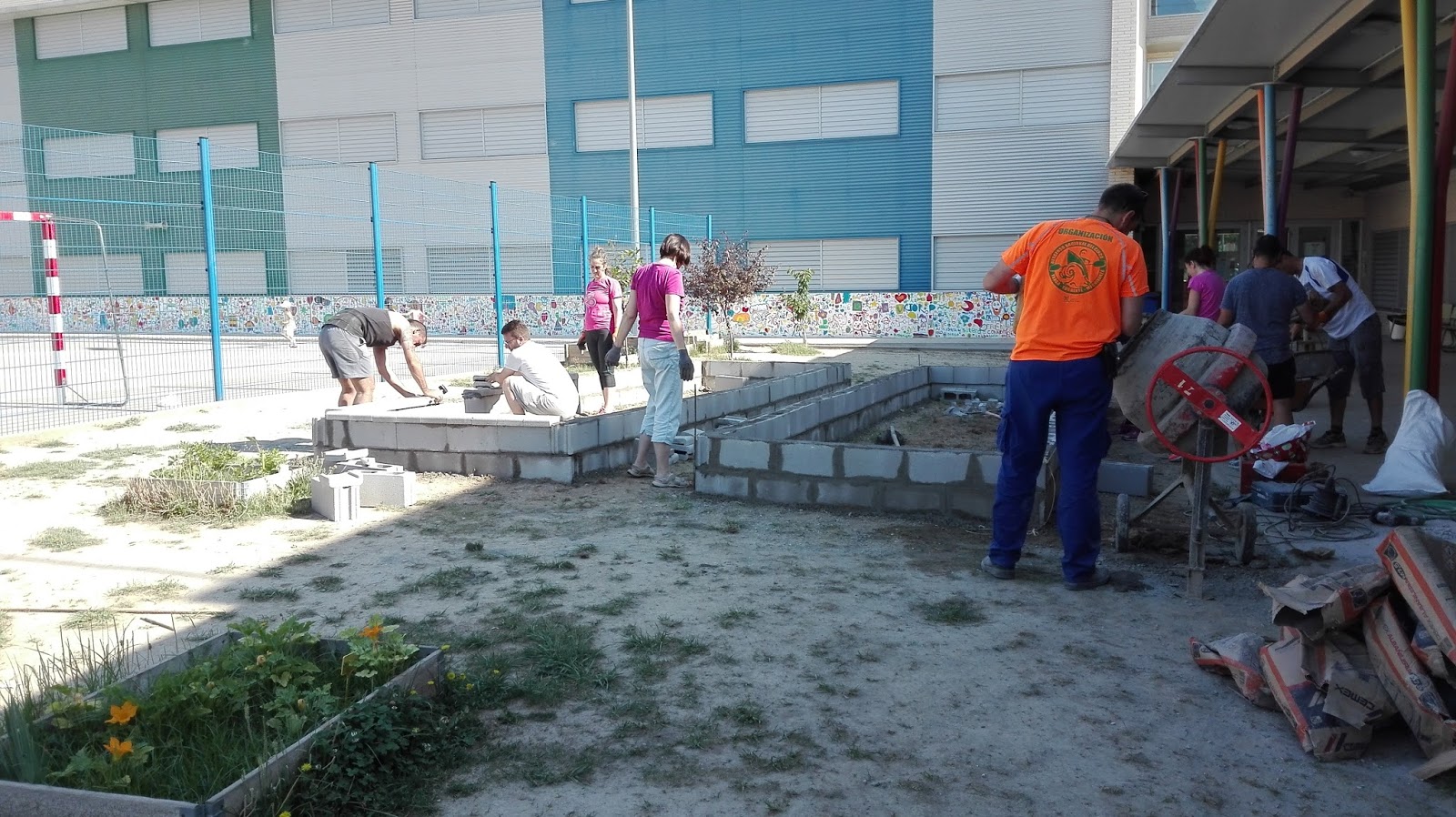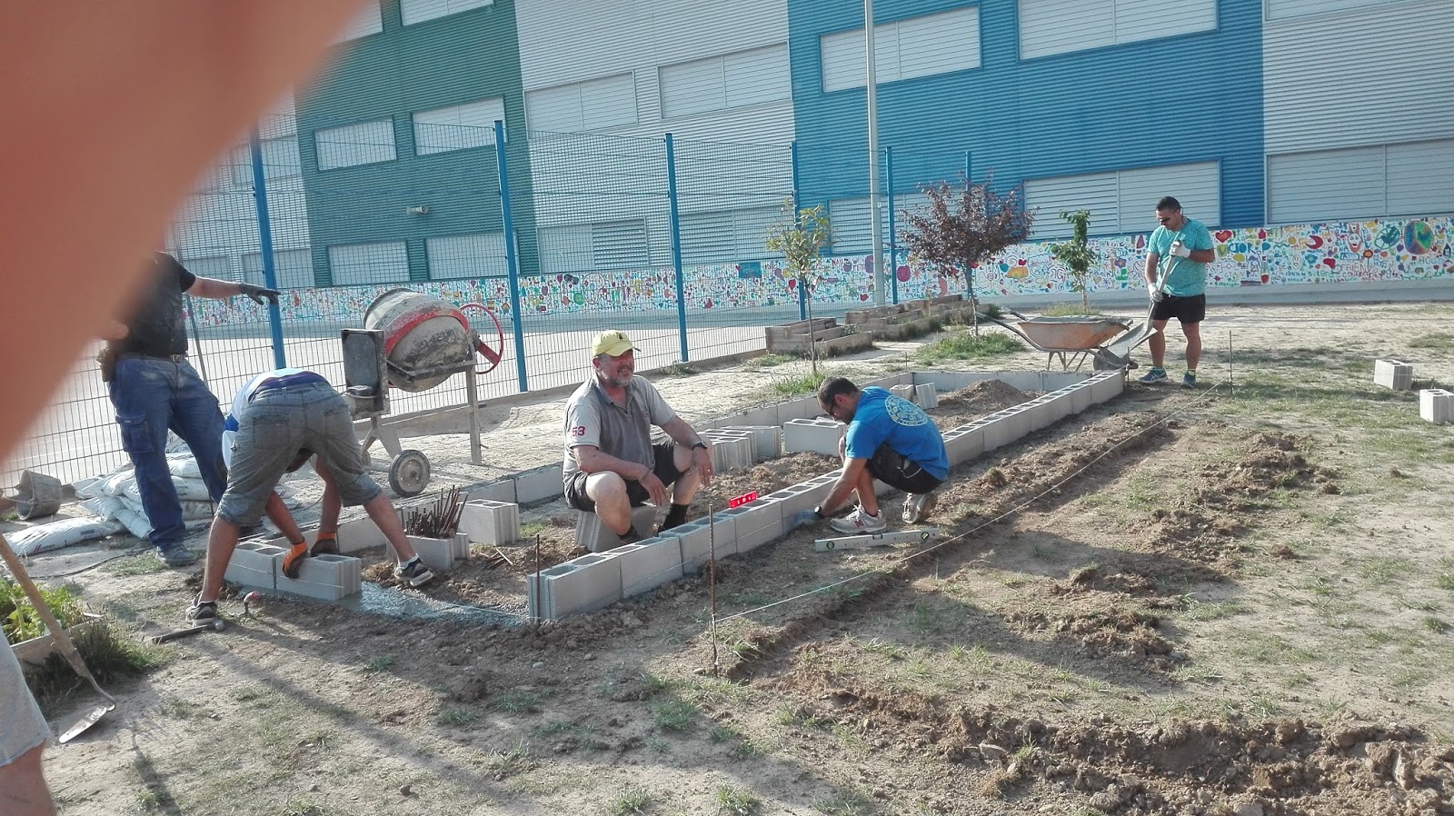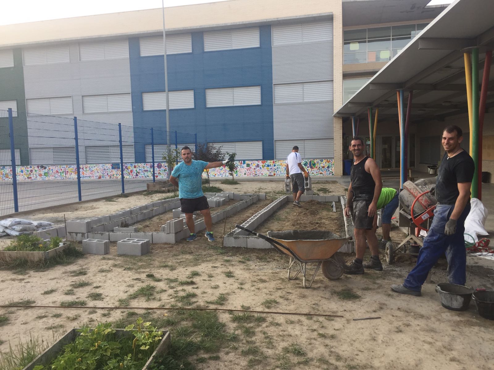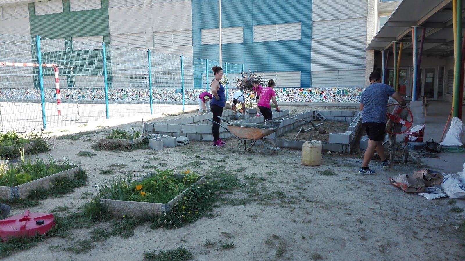 Un grupo de padres y madres voluntarios hemos empezado a mejorar el huerto del colegio. Se han colocado dos bancales de hormigón para que alumnos y profesores puedan usarlos a partir del curso que viene.