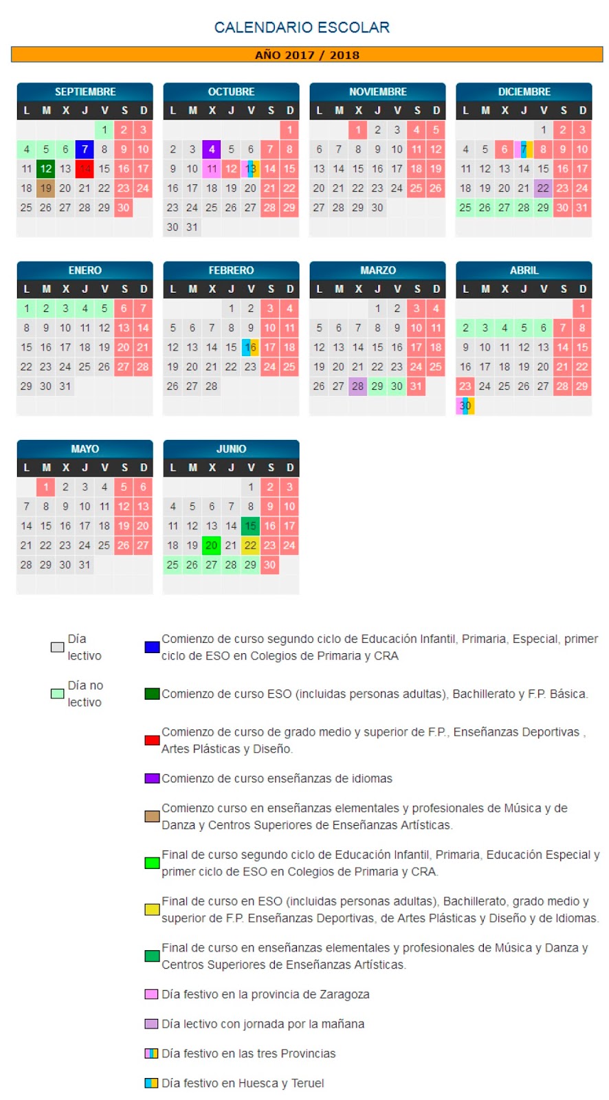CALENDARIO ESCOLAR CURSO 2017/18