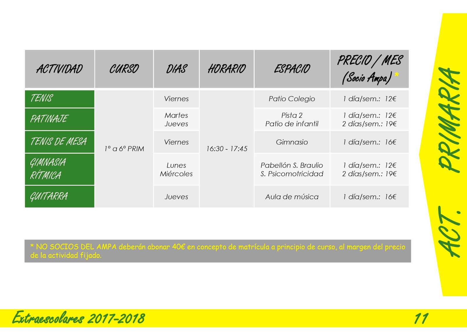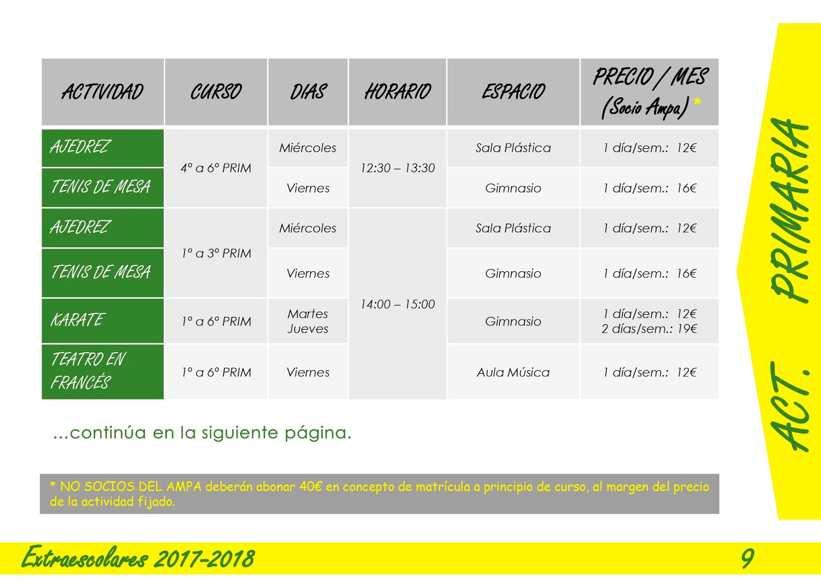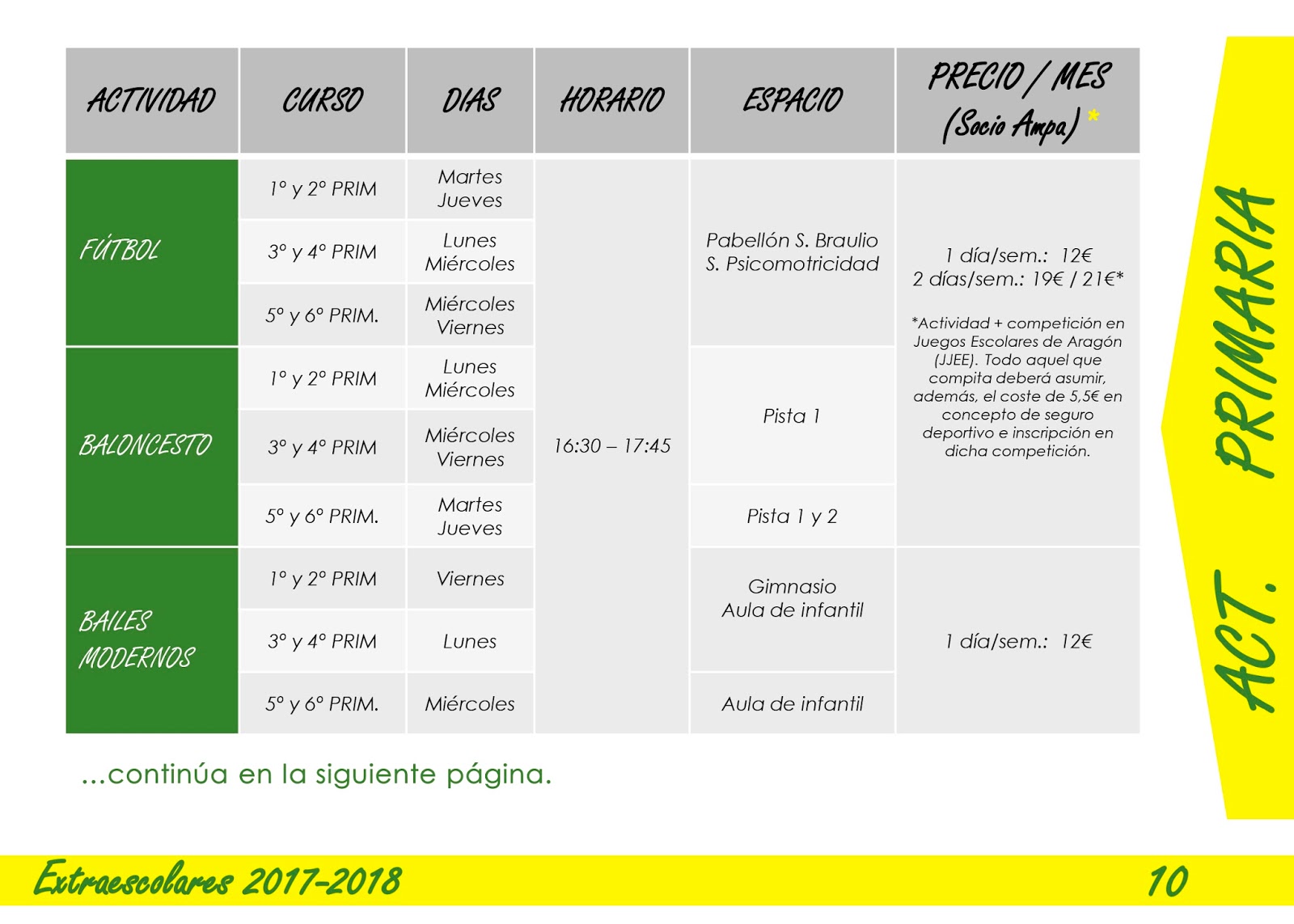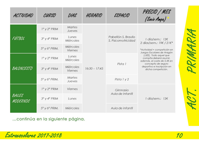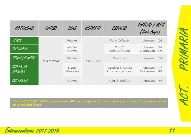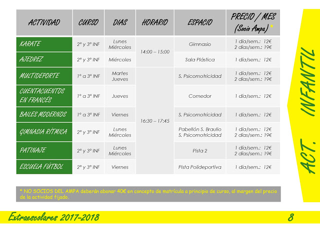 Toda la información de las extraescolares que a continuación se exponen están en el folleto en pdf mas abajo para que lo descargueis .