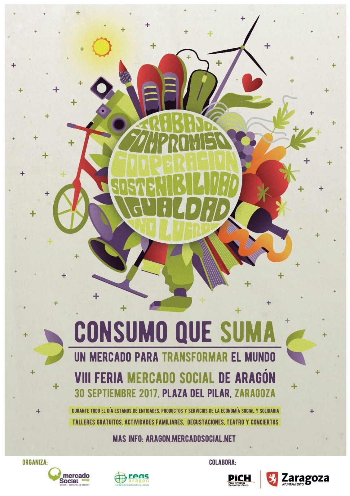 El sábado 30 de septiembre la cooperativa del Mercado Social sale a la calle. Desde las 10 de la mañana en la Plaza del Pilar, más de 60 puestos de entidades con productos y servicios de Economía Social y Solidaria. Actuaciones de Patri Coronas, Lü de Lurdes, Vegetal Jam y Batucada Rebelason. Chocolatada, Talleres, Degustaciones, Barra y puestos de comida con productos veganos, ecológicos y de Comercio Justo.