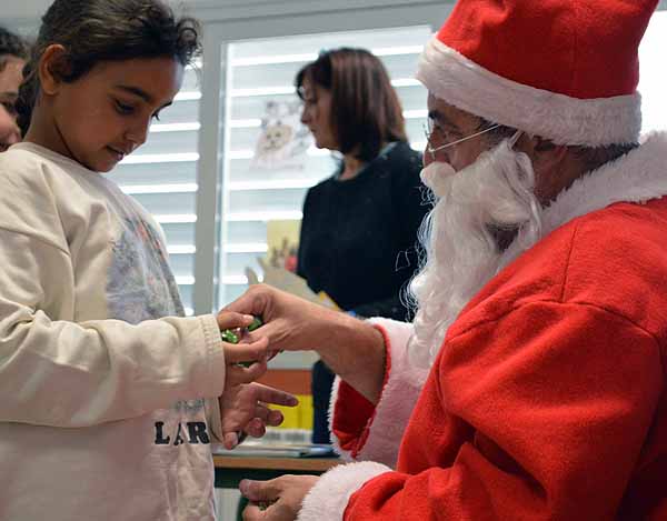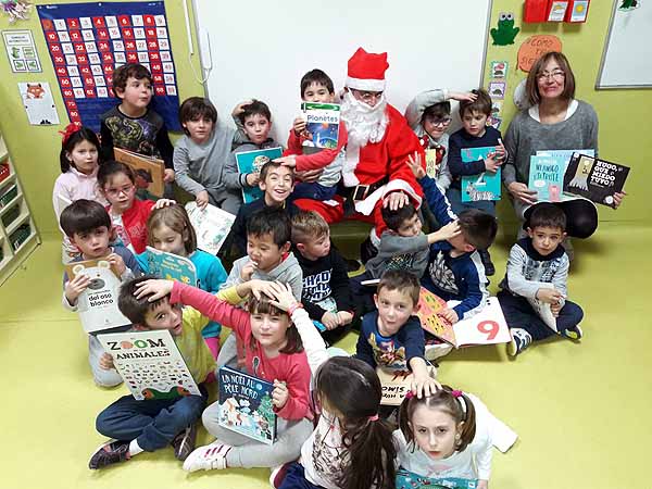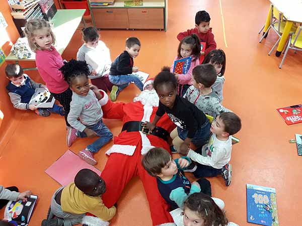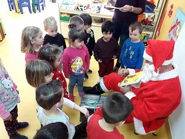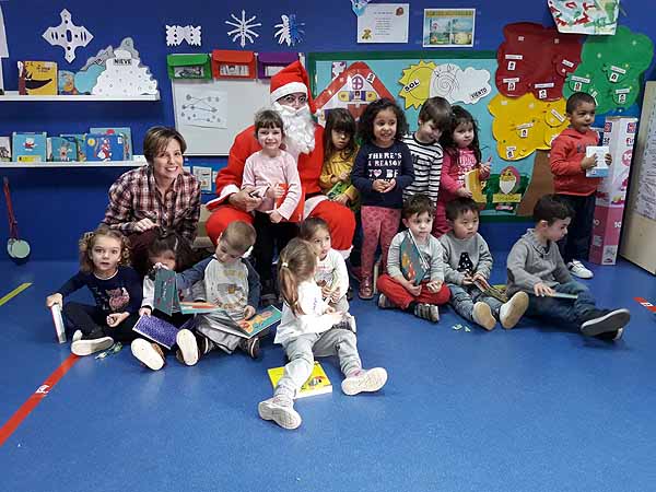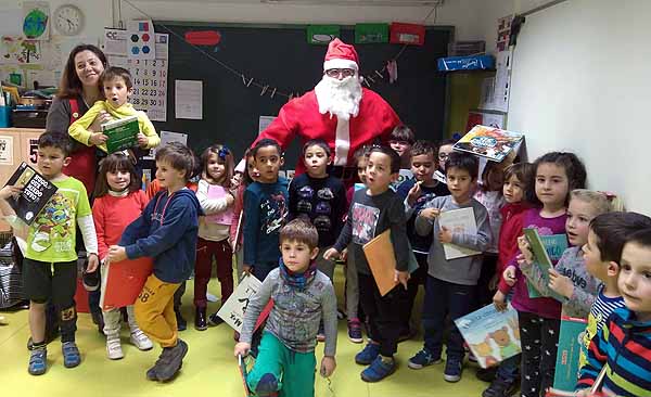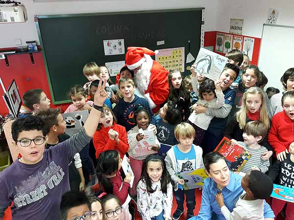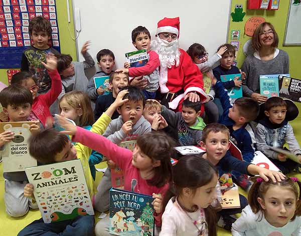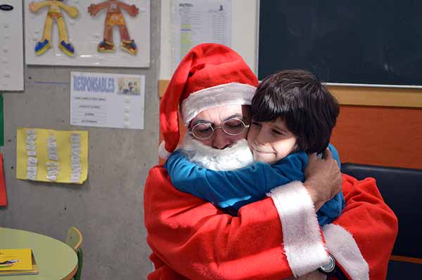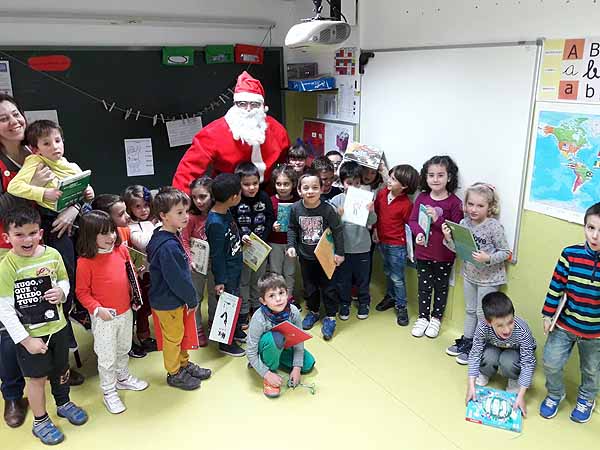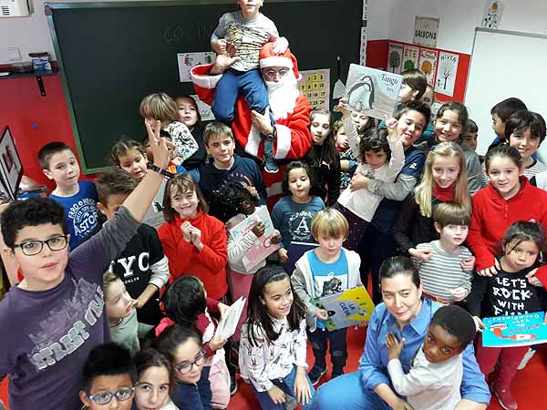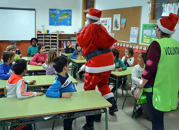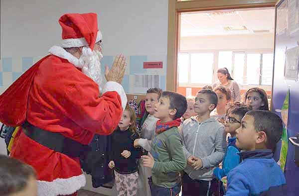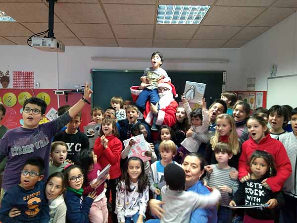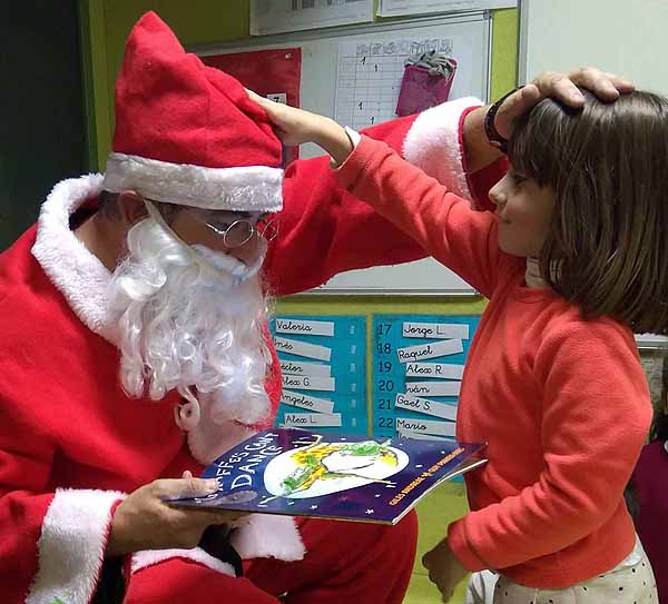 Desde Laponia…invitado por el AMPA…ayer en primer ciclo de primaria y hoy en infantil, los niños han recibido la visita de Papá Noel y su ayudante para repartir: