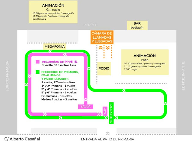 - Los adultos harán solamente 3 vueltas (antes se hacían 4) así que os habéis quedado sin excusas para correr 😉