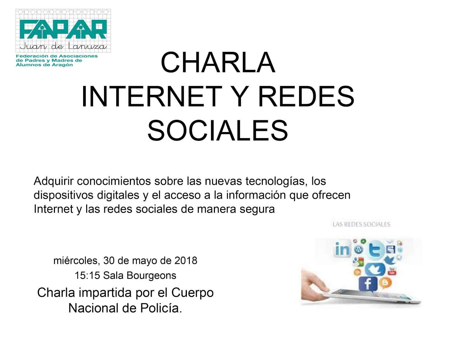 Ultima de las charlas que organizan el Ampa junto con FAPAR , esta vez vendrá un experto de la policía a enseñarnos a entender las dificultades que pueden darse en el manejo de las redes sociales y poder usarlas de manera segura ,especialmente en el uso que lwe puedan dar nuestros hijos.