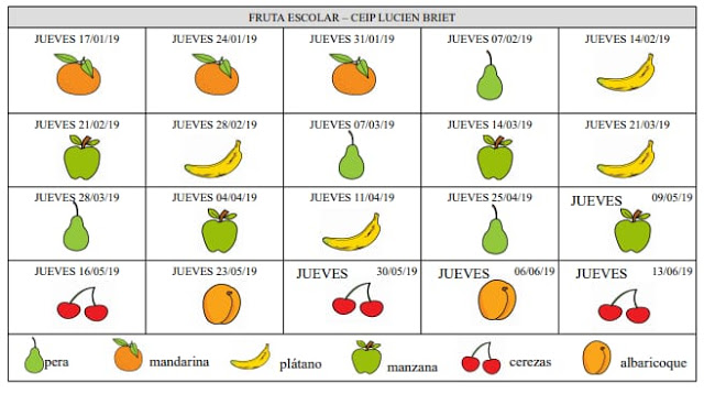 Os dejamos la CAMPAÑA DE FRUTA EN EL COLE para este curso. También la dejaremos colgada en la columna derecha de esta pagina durante todo el curso.Para alumnos a partir de 3º de infantil.