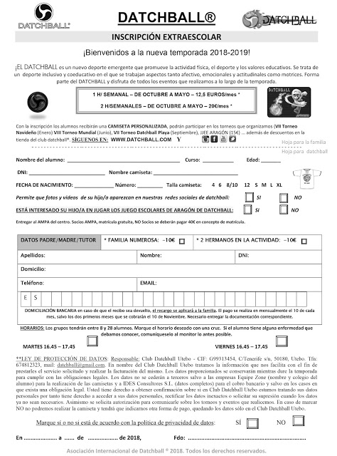 El Datchball , deporte emergente que promueve la actividad física, el deporte y los valores educativos llega a nuestro cole como extraescolar podeis descargar la hoja de inscripción AQUI