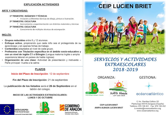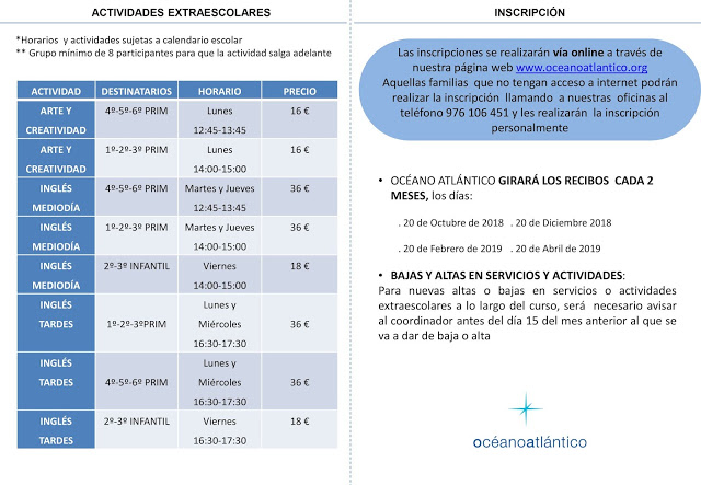 Os dejamos el folleto de las extraescolares que ofrece OCEANO ATLANTICO. Podéis descargar el pdf AQUI