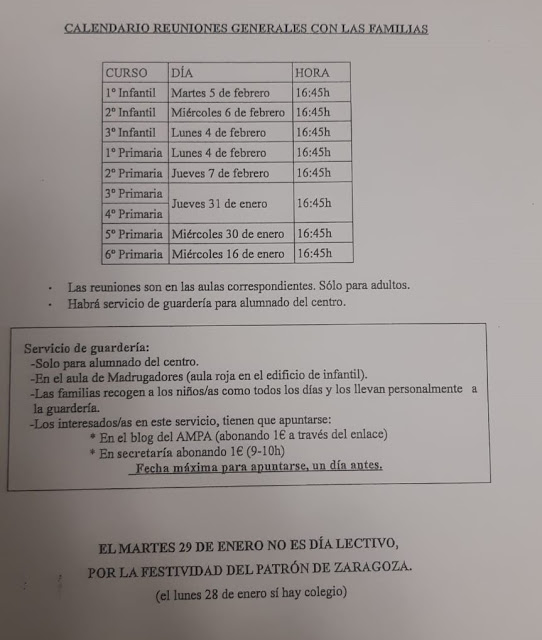 Os dejamos el calendario de reuniones con las familias del segundo trimestre, recordad que podéis apuntaros a la guardería si necesitáis dejar al niño durante la reunión . Deberéis apuntaros en el siguiente enlace antes de las 17:30 horas del día anterior.