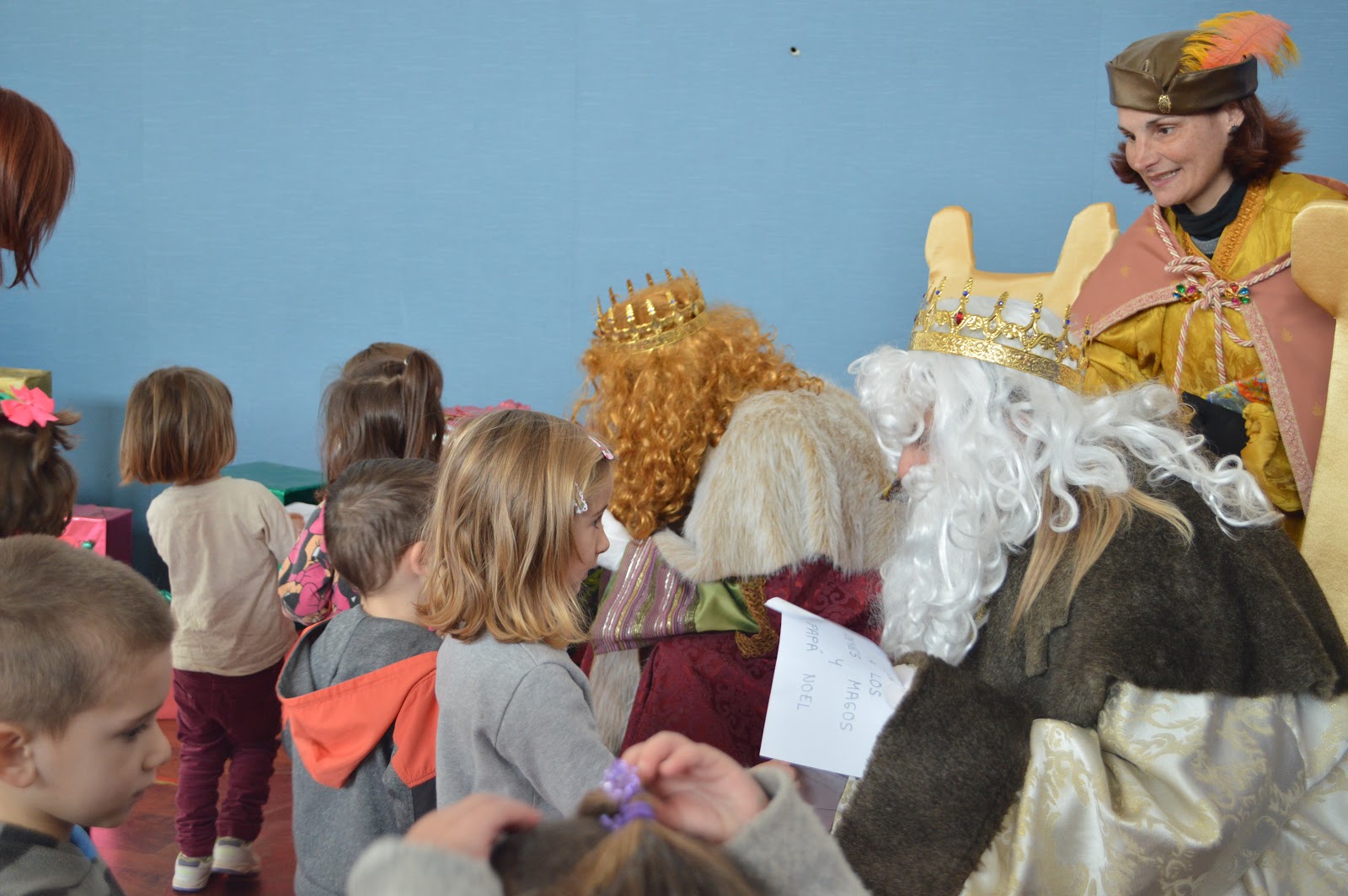 Al día siguiente, nos visitaron sus Majestades de Oriente, acompañados de dos pajes, los reyes visitaron todas las aulas del colegio y recogieron las cartas que habían dejado los niños en los buzones reales del centro.